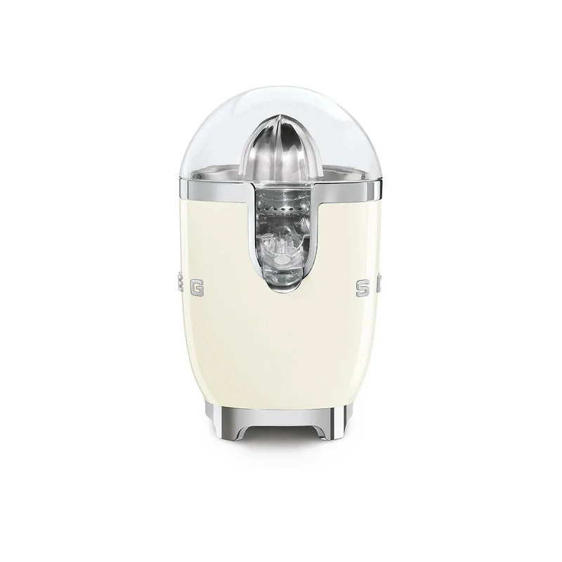 ظاهر آب مرکبات گیری اسمگ CJF01 دقیقا همون چیزیه که از یه محصول برند اسمگ انتظار داری، یه طراحی فوق العاده خوشگل و دلبر که حال و هوای قدیمی و جذاب سبک رترو رو برمیگردونه به آشپزخونه. بدنه دستگاه خیلی تمیز و یکدست طراحی شده و وقتی روی کابینت میزاریش، انگار از قصد گذاشتی که دیده بشه چون واقعا چشم رو میگیره. اسمگ همیشه روی ظاهر محصولاتش حساسه و این مدل هم دقیقا همون حس شیک بودن و کیفیت بالا رو منتقل میکنه.