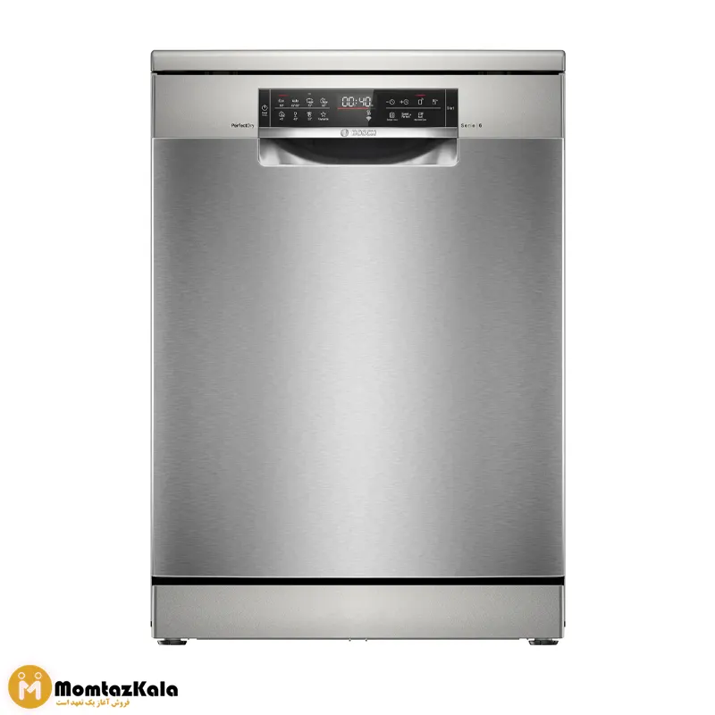 ماشین ظرفشویی بوش مدل SMS6ZCI49E که ظرفیت 14 نفره داره، عمر مفید خیلی خوبی داره. این مدل با بدنه استیل ضد زنگ ساخته شده و بسته به اینکه چطور ازش استفاده کنی، میتونی حدود 10 تا 15 سال یا حتی بیشتر ازش استفاده کنی. علاوه بر این، بدنه اش خاصیت ضد اثر انگشت هم داره، یعنی همیشه تمیز میمونه و لکه نمیگیره. ظاهر شیک و مدرنش هم باعث میشه به راحتی با هر آشپزخانهای ست بشه. در قسمت جلویی دستگاه یه صفحه نمایش مشکیرنگ و مستطیلی شکل قرار داره که به راحتی میتونی برنامههای شستشو و گزینههای اضافی رو از روش انتخاب کنی.
