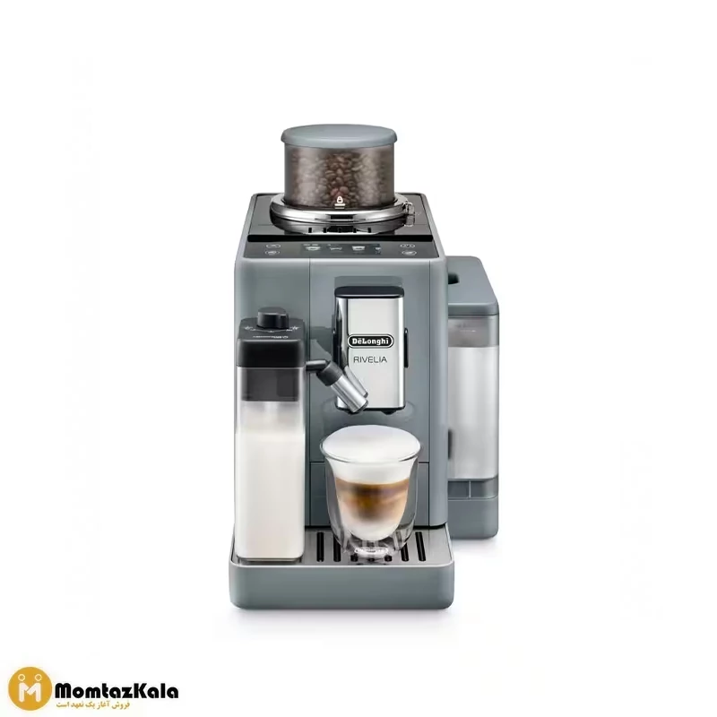 طراحی اسپرسو ساز دلونگی EXAM440.55 کاملاً مدرن و لوکسه. بدنه دستگاه ترکیبی از رنگ های مشکی و خاکستریه که حس یک دستگاه حرفه ای و رده بالا رو میده. این مدل از سری Rivelia دلونگیه و طراحیش صاف، یکدست و مینیماله. وقتی اسپرسو ساز دلونگی 440.55 روی کابینت قرار میگیره، از همون ظاهرش مشخصه که با یک دستگاه با کیفیت و پیشرفته طرف هستی.