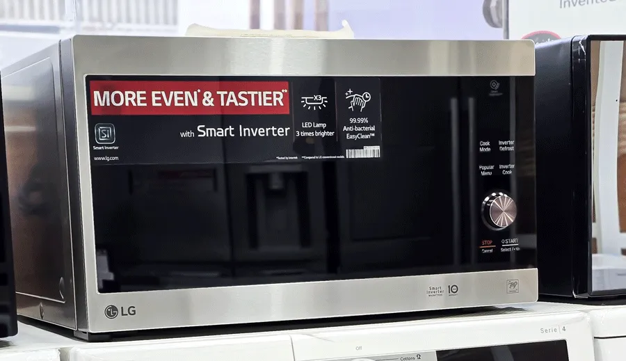 | سایر ویژگی های مایکروویو و سولاردام | پنل کنترلی لمسی و دیالی (Touch & Dial) برای کنترل راحت تر و بهتر مایکروویو, پوشش آنتی باکتریال داخل مایکروویو برای کاهش چسبندگی باکتری های مضر تا 99.99% به دیواره مایکروویو و تمیز کردن آسان آن, تکنولوژی اسمارت اینورتر (Smart Inverter) ال جی برای پخت و پز، یخ زدایی و گرم کردن دقیق غذاها, دارای لامپ LED داخلی با روشنایی 3 برابر لامپ های معمولی و مصرف انرژی کمتر, دارای هیتر (Heater) برای پخت و پز بهتر و یکنواخت غذاها و مواد غذایی, دارای هیتر کوارتزی (Quartz) برای تولید گرما و پخت بهتر غذاها, درب تمام شیشه ای از جنس شیشه حرارت دیده و بسیار مقاوم به رنگ دودی, صفحه گردان داخلی با 6 نقطه تثبیت کننده به شکل 6 ضلعی برای جلوگیری از ریخت مواد غذایی, قابلیت Clock برای نمایش ساعت, قابلیت Fast Cooking برای پخت و پز سریع غذاها در مدت زمان کمتر, قابلیت More/Less برای افزایش یا کاهش زمان پخت و پز به دلخواه, قابلیت Quick Start برای پخت و پز سریع تر غذاها, قابلیت Smart Diagnosis برای عیب یابی هوشمند, قابلیت Stable Working برای عملکرد در مناطق جغرافیایی که ولتاژ برق پایینی دارند (حداقل 150 ولت معادل 300 وات), قابلیت Tastesaver برای حفظ طعم اصلی غذاها, قابلیت Time Setting برای تنظیم دستی زمان پخت و پز, قابلیت Various Cooking و استفاده از مایکروویو برای پخت و پز، گرم کردن غذاها، سرخ کردن مواد غذایی و همچنین تهیه ماست خانگی, قابلیت گریل (Grill) یا کباب کردن مواد غذایی به صورت یکنواخت, قابلیت یخ زدایی (Defrost) برای یخ زدایی کامل و یکنواخت مواد غذایی منجمد, نمایشگر ال ای دی با نور سفید (White LED) برای نمایش اطلاعات |