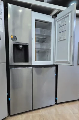 یخچال ساید بای ساید ال جی X257 سیلور یکی از مدلهای پریمیوم سری InstaView است که با طراحی مدرن و رنگ نقرهای استیل، جلوهای لوکس و هماهنگ با هر سبک آشپزخانه ایجاد میکند. درب InstaView Door-in-Door با دو ضربه روشن میشود و امکان مشاهده داخل بدون بازکردن درب را میدهد؛ ویژگی ای که هم مصرف انرژی را کاهش میدهد و هم دسترسی سریع به اقلام پرمصرف را راحتتر میکند. ظرفیت بالا، چیدمان هوشمند، قفسه بندی کاربردی و سیستم سرمایش یکنواخت Multi-Air Flow این مدل را به گزینهای عالی برای خانواده های متوسط تا بزرگ تبدیل میکند.