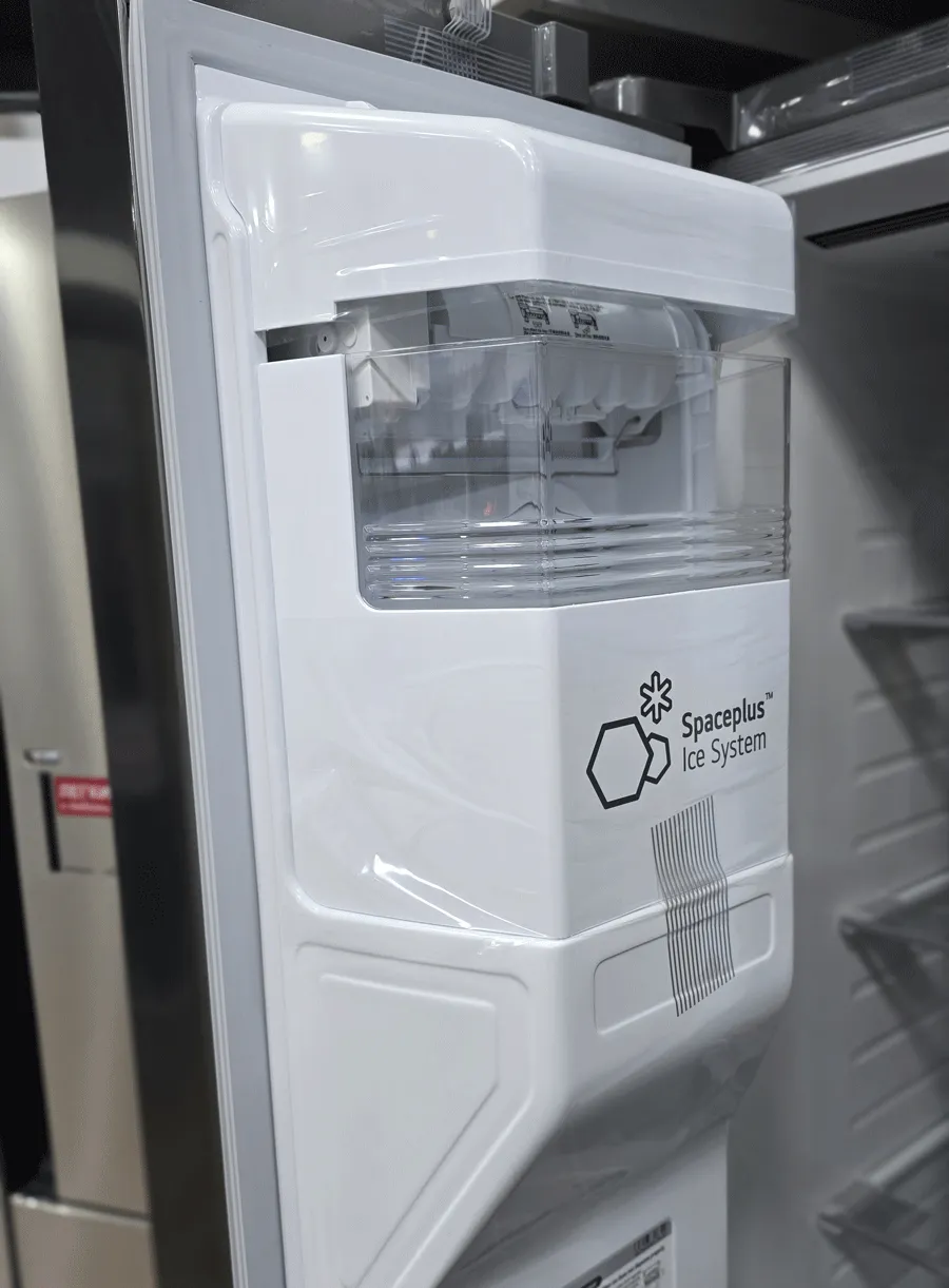 یخساز SpacePlus Ice System: یخساز خودکار که روی درب فریزر قرار گرفته. پس نیاز به پر کردن مخزن ندارید و همیشه یخ و آب خنک آمادهست.