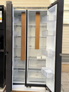 ظرفیت کلی دستگاه ۶۴۷ لیتر است که فضای وسیعی برای نگهداری مواد غذایی و اقلام روزمره فراهم میکند. چیدمان داخلی آن کاملاً هوشمند طراحی شده تا استفاده از هر بخش آسان و منظم باشد. دو درب اصلی (سمت راست یخچال و سمت چپ فریزر) با زاویه بازشو مناسب، دسترسی کامل به تمام قسمت ها را ممکن میسازد و طراحی مینیمال و بدون قاب درب ها، نمایی لوکس و بی نقص ایجاد کرده است.