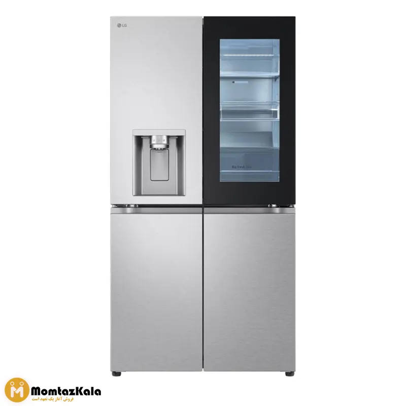 این یخچال جزو سری Next الجیه و طراحی خاصش با 4 تا درب، استفاده ازش رو خیلی راحت کرده. ظرفیتشم از مدلهای معمولی بیشتره و برای خانوادههای پرمصرف گزینه خیلی خوبیه. یه قابلیت جذابش “درب در درب” (Door-in-Door) هست که یه درب کوچیک توی یخچال داره و برای دسترسی سریع به بعضی مواد غذایی طراحی شده. البته این باعث شده بعضیها فکر کنن 5 تا در داره، ولی در واقع 4 درب اصلی داره.