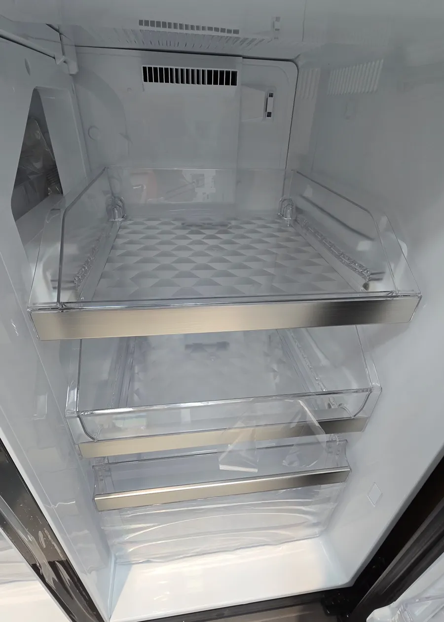 یخچال 30 فوتی X39 الجی با ظرفیت 847 لیتر، فضای فوقالعادهای برای نگهداری مواد غذایی فراهم کرده. سه طبقه شیشهای مقاوم در قسمت بالا، علاوه بر ظاهر زیبا، از نظر عملی هم کارا هستن و در برابر ضربه مقاومند. دور این طبقات هم از فلز ساخته شده که علاوه بر شیک بودن، به حفظ سرمای داخل کمک میکنه.