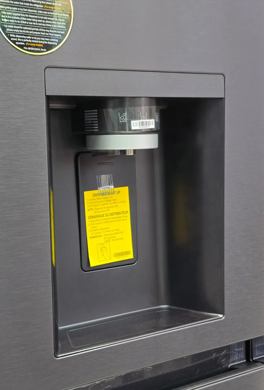 پنل کنترلی هم بالای یخچال قرار داره که تنظیم دما، اتصال به اینترنت و سایر تنظیمات رو خیلی راحت میشه انجام داد. یخچال آبریز و یخریز داره و حتی یخهای کروی هم میسازه! این یعنی همیشه یخ در دسترس خواهید داشت.