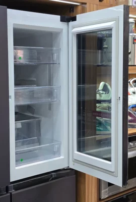 یخچال الجی با قابلیت اینستاویو (InstaView) واقعاً حسابی جذاب شده! وقتی بهش نگاه میکنید، داخلش به نظر تاریک و بسته میاد، ولی تنها کافییه دو بار به شیشه ضربه بزنید تا چراغها روشن بشن و شما بتونید راحت ببینید چه چیزهایی تو یخچال دارید. این ویژگی نه تنها به طراحی یخچال جلوه خاصی میده، بلکه باعث میشه دیگه نیازی به باز کردن درب نباشه و بتونید سریعاً مواد غذایی رو چک کنید، بدون اینکه انرژی هدر بره!