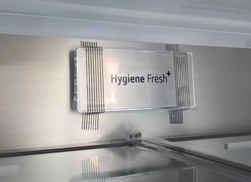 - تکنولوژی Hygiene Fresh+: این فناوری با استفاده از یه فن مکنده، فیلترهای چندلایه و نور UV هوای یخچال رو تمیز میکنه و تا ۹۹.۹۹۹٪ باکتریها رو از بین میبره. به لطف این قابلیت، بوی بد یخچال رو فراموش کن!