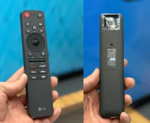 ریموت کنترل جادویی یا همون Magic Remote همراه دستگاه هست که هم با اشاره و حرکت کار میکنه، هم قابلیت فرمان صوتی داره.