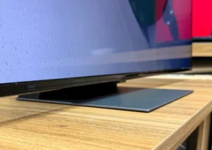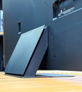 پایه هاش از نوع Slim Metal Feet هستن، یعنی دو تا پایهی باریک که تو دو طرف قرار میگیرن و تعادل خوبی به دستگاه میدن. هم ظاهر شیکی دارن، هم با اکثر میزهای تلویزیون مدرن هماهنگن.