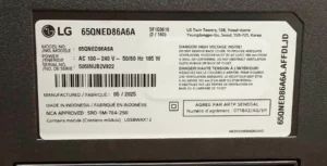 تلویزیون ال جی مدل 100QNED86A سال 2025 در کشورهای مصر و اندونزی مونتاژ میشه.