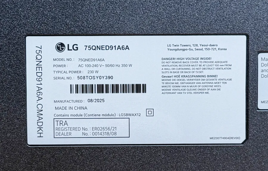 تلویزیون ال جی مدل QNED91A مونتاژ کشور چین هست.