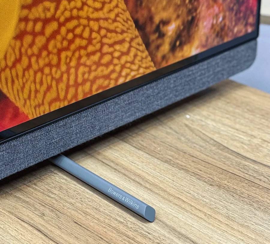 یکی از بزرگ ترین تفاوتهای 65OLED910 با مدل های معمولی، استفاده از سیستم صوتی حرفهای Bowers & Wilkins است. این مجموعه صوتی با توان خروجی 69 وات ( 6 اسپیکر 6.5 واتی + 1 ساب ووفر 30 واتی) صدایی بسیار قدرتمند، شفاف و با تفکیک بالا تولید میکند. پشتیبانی از Dolby Atmos و DTS:X تجربهای فراگیر ایجاد میکند که در بسیاری از شرایط، نیاز کاربر به ساندبار را کاملاً برطرف میسازد. کیفیت ساخت اسپیکرها، عمق صدا و وضوح دیالوگ ها در سطح بسیار بالاتری نسبت به تلویزیون های میان رده قرار دارد و یکی از بزرگترین نقاط قوت 65OLED910 محسوب میشود.