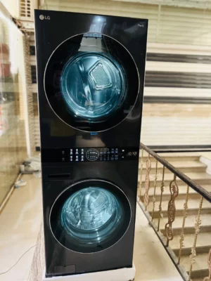 کنترل پنل لمسی واش تاور ال جی 2116 دودی، که چراغ LED داره، درست وسط قرار گرفته و دسترسی به بخشهای لباسشویی و خشککن رو آسون کرده. این پنل Central Control دو قسمت مجزا برای تنظیمات ماشین لباسشویی و خشککن داره که خیلی راحت و سریع میشه تنظیمات دلخواه رو انجام داد. درب هر دو بخش به سمت چپ باز میشه و با قاب فولاد مشکی و حاشیه نقرهای کرومی طراحی شده، که در برابر خط و خش مقاومت بالایی داره. شیشه دیگها هم از نوع حرارتدیدهست و در برابر ضربه و حرارت مقاومه، پس خیالتون از این بابت راحته.