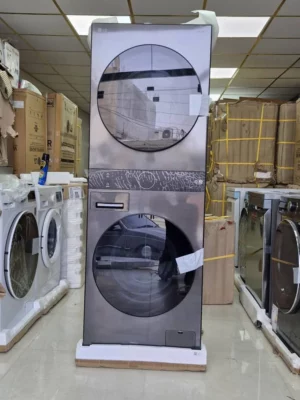 در قسمت پایین این محصول، لباسشویی مدل F1S1CYK2EH برای شستشو و در قسمت بالا، خشککن مدل RH16S1JVDW قرار گرفته که بهخوبی میتونه لباسها رو کاملاً خشک کنه. ظرفیت شستشوی 21 کیلویی و سرعت چرخش 1300 دور در دقیقه باعث میشه حجم بالایی از لباسها رو با کیفیت بالا تمیز کنین. خشککن هم ظرفیت 16 کیلویی داره، و از اونجایی که هر کدوم موتور مجزا دارن، میتونین شستشو و خشککردن رو همزمان انجام بدین. این مدل شباهت زیادی به WK2116 داره و تفاوت خاصی بینشون نیست. سنسور Load Detect در این لباسشویی وزن لباسها رو تشخیص میده و با توجه به اون، میزان آب و انرژی مورد نیاز رو تنظیم میکنه.